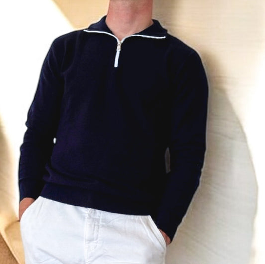 PromotionPull Bleu avec Zip Coton piqué