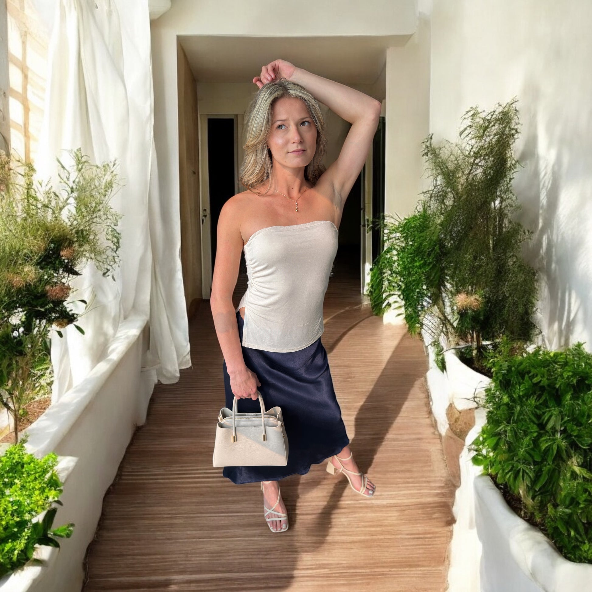 Minimaliste, ultra-doux, seconde peau : ce bandeau stretch beige est l’allié parfait pour toutes tes tenues estivales.